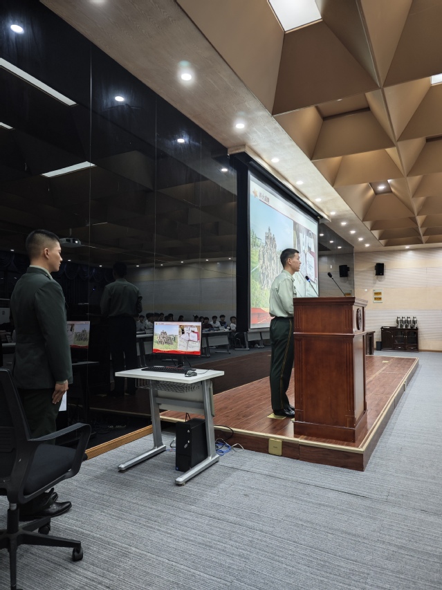 分享结束后,辅导员周子豪进行总结发言。他首先对王家豪、吴雨泽两位同学的精彩分享表示感谢,并高度肯定了退伍学生身上展现出的军人风采与担当精神。鼓励2025级新生以退伍学长为榜样,主动了解征兵政策,树立“国有所需,我有所应”的家国情怀,若条件符合,积极报名参军,用实际行动践行青年一代的责任与使命,在国防事业中书写属于自己的青春华章。