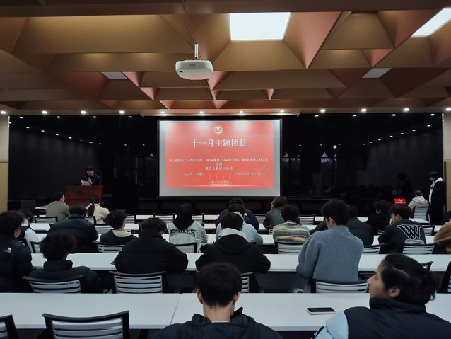 11月23日,我院休闲体育2541团支部、休闲体育2542团支部、休闲体育2543团支部联合开展11月份主题团日活动,分团委书记李雪晴、辅导员周子豪出席会议,全体2025级学生参会。