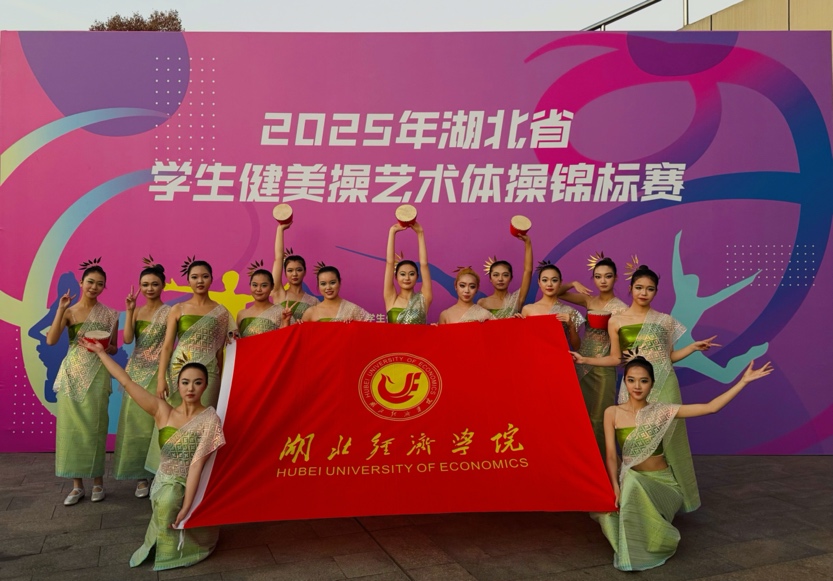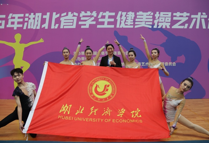 湖北经济学院 艺术体操代表队经过激烈的角逐,努力拼搏、力克强队获得